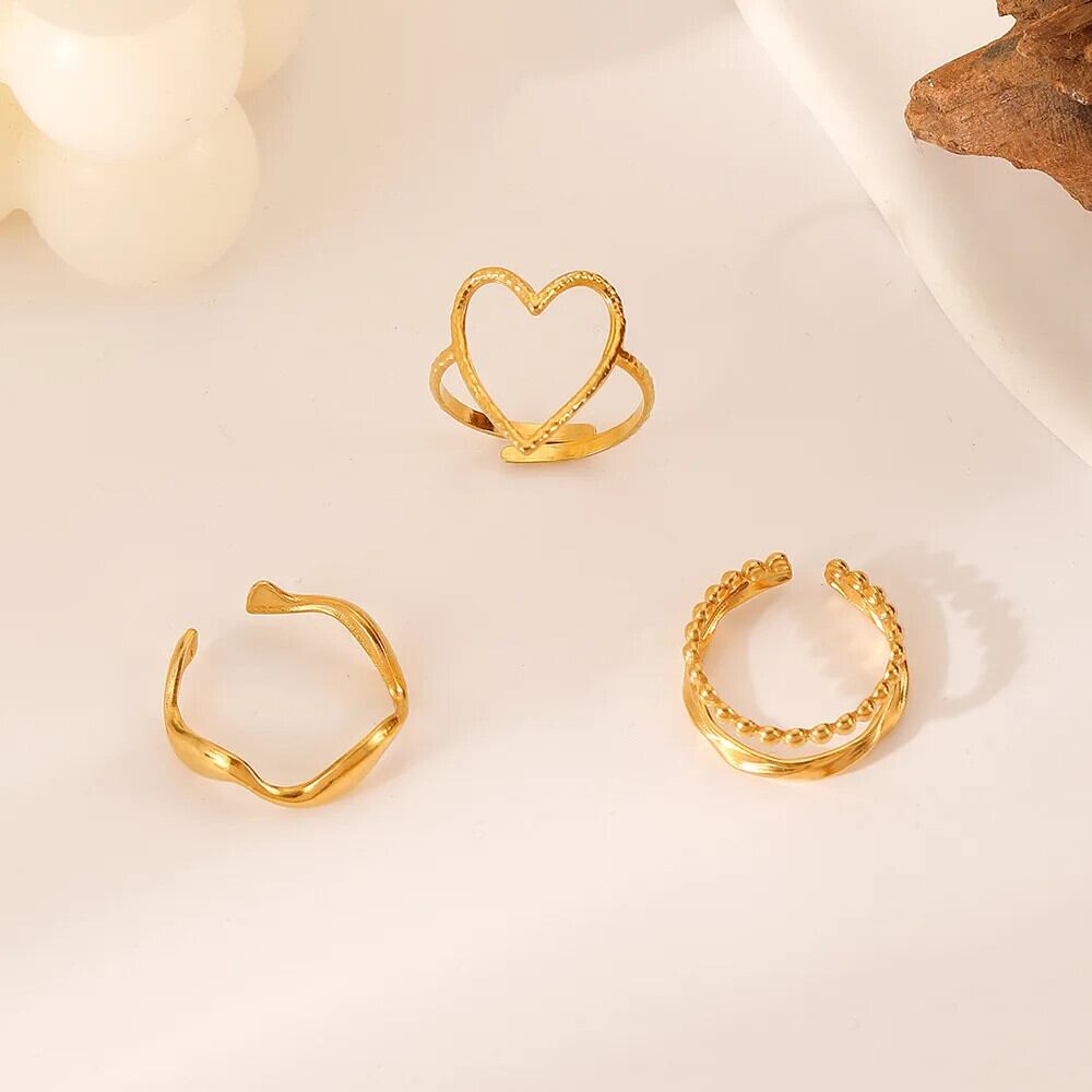 送料無料 NEULRY 少数派シンプルなゴールドカラーのハート波オープニングリングセット女性パンクジュエリーパーティー除草ギフトトレンディ 指輪 AE12776767721518456077