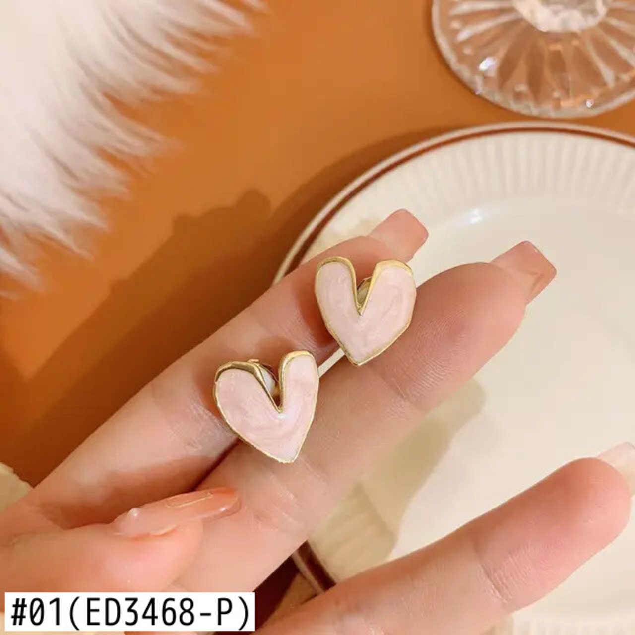 送料無料 ピンクホワイトカラービッグハートスタッドピアス女性ガール愛釉美的日常生活ミニマリストジュエリーギフト イヤリング リング 指輪 AE1277676771818821067