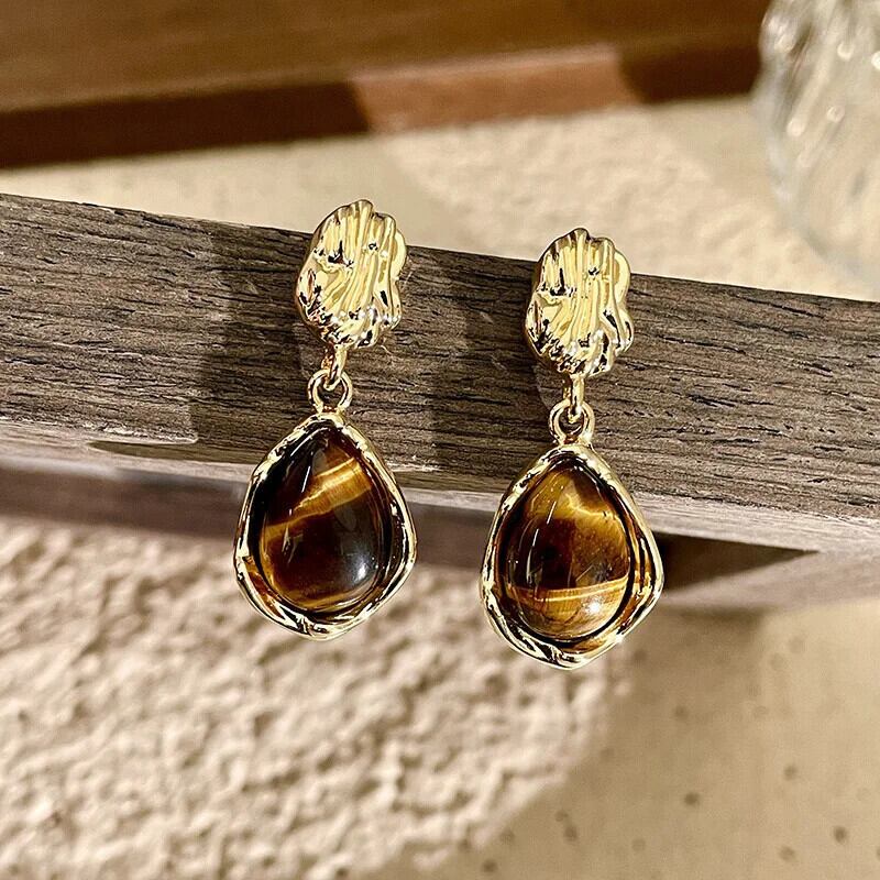 送料無料 ライト高級女性ナチュラルタイガーアイストーンイヤリングブラブライヤリングファンシーイヤリング大胆な宝石石ジュエリーギフト 指輪 天然 AE12776767753677663194