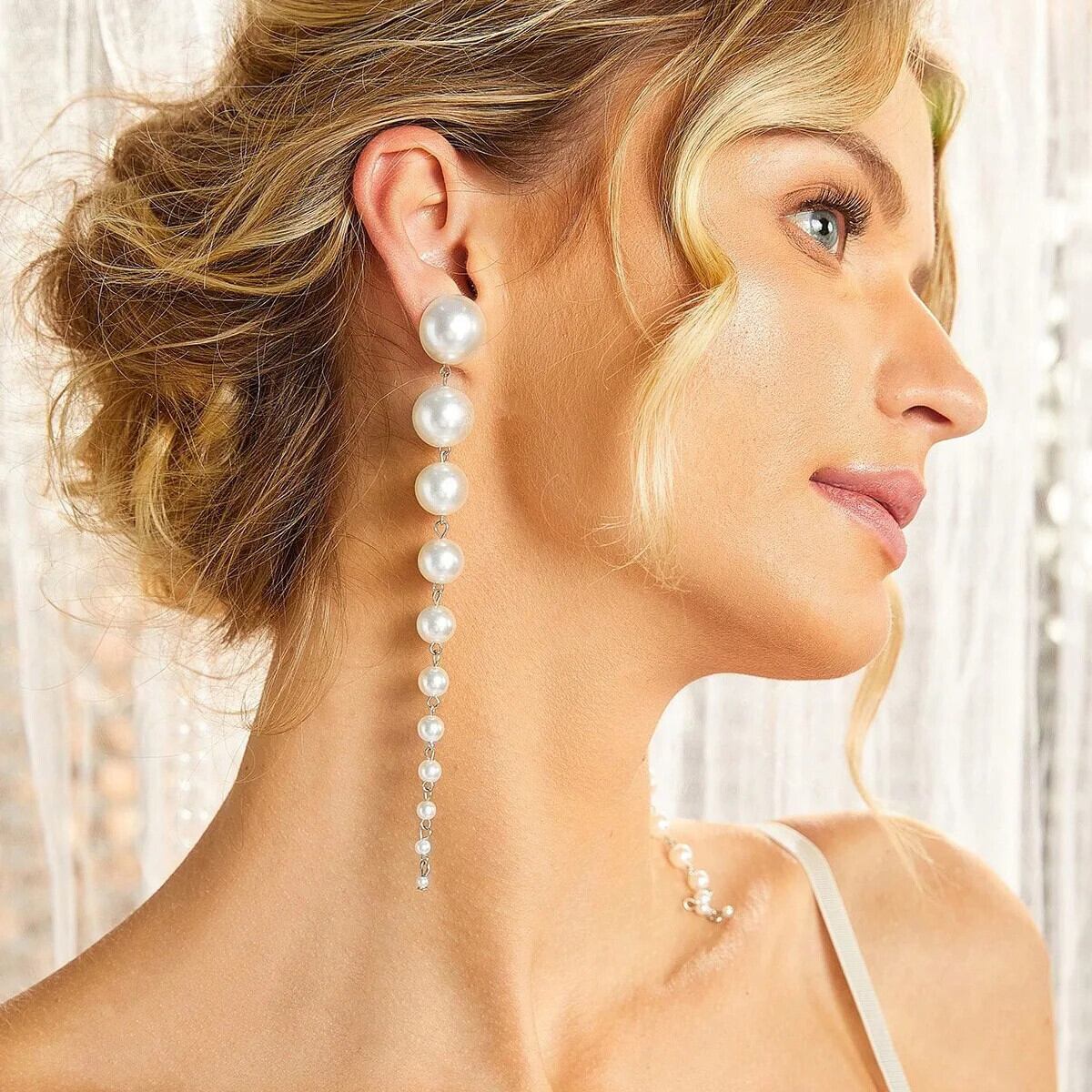 送料無料 トレンドシミュレーションパールロングイヤリング女性チェーンイヤリングブライダルウェディングパーティージュエリー 真珠 指輪 AE12776767746627325870