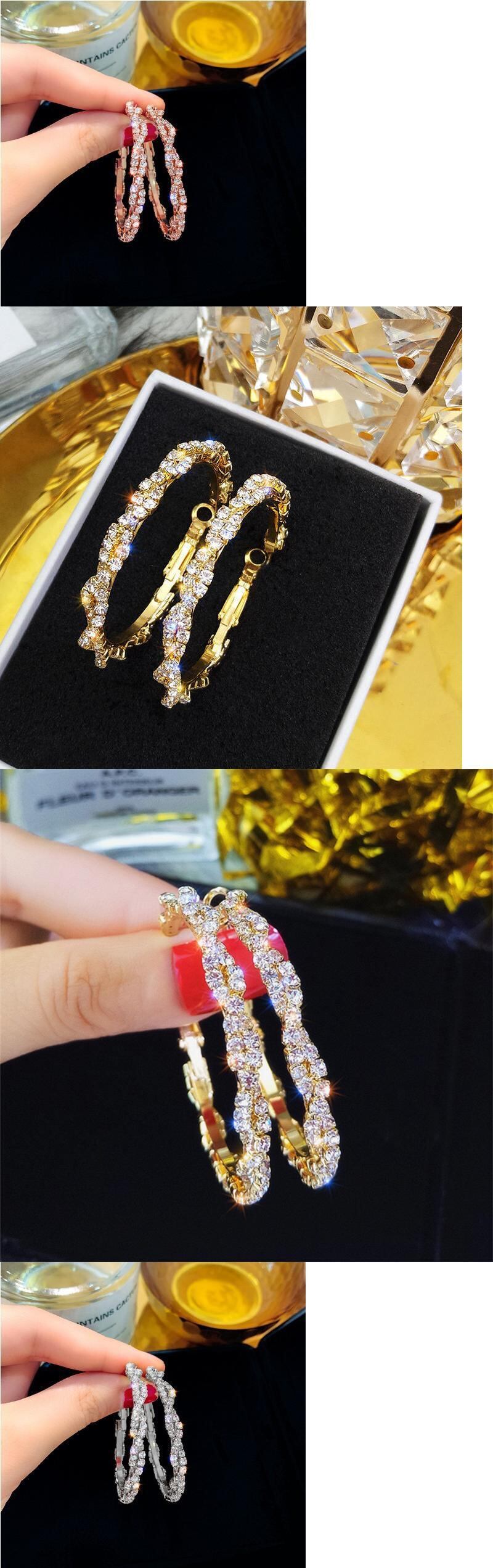 送料無料 スタイル巻きクリスタルジルコニアラージサイズイヤリングゴールドシルバーローズゴールドカラーステンレススチールイヤリング 大きめサイズ 指輪 銀 風信子石 AE12776767724629195165