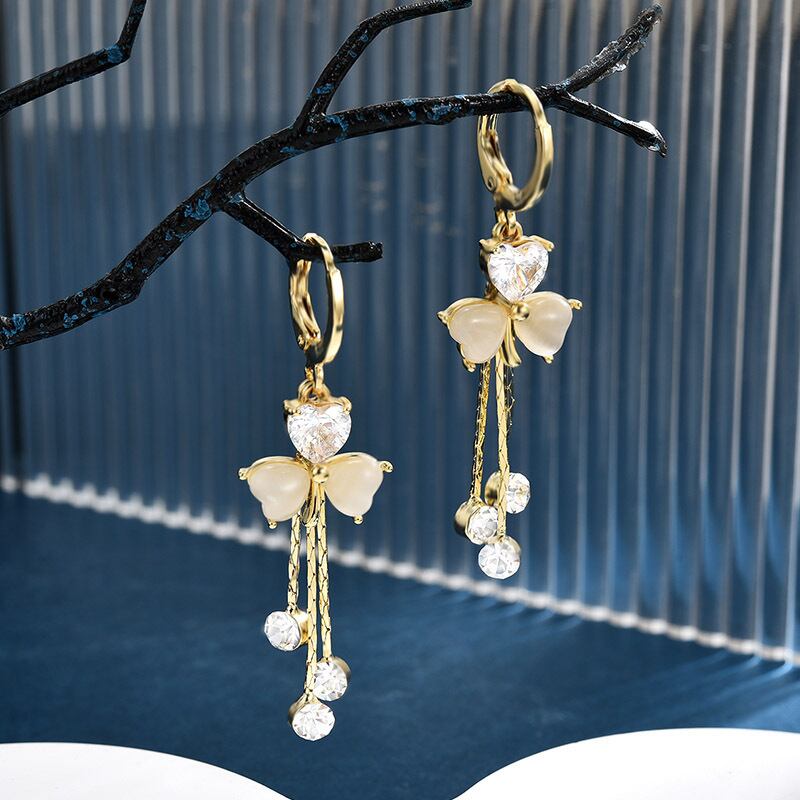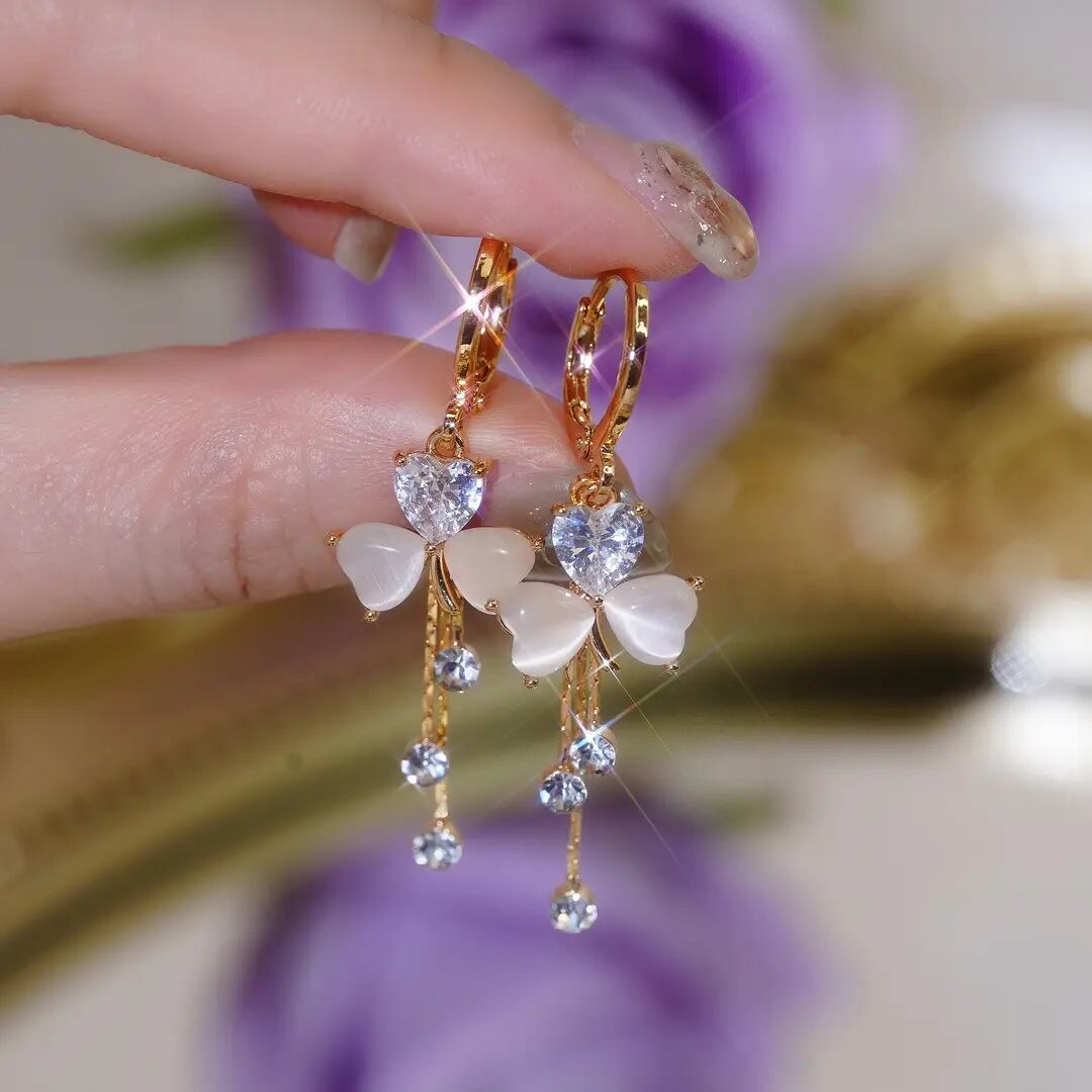送料無料 2024 クローバーイヤリングフリンジ女性トレンディなバックルスタイルジルコンイヤリングジュエリーギフトガールパーティー結婚式 指輪 AE12776767773653753021