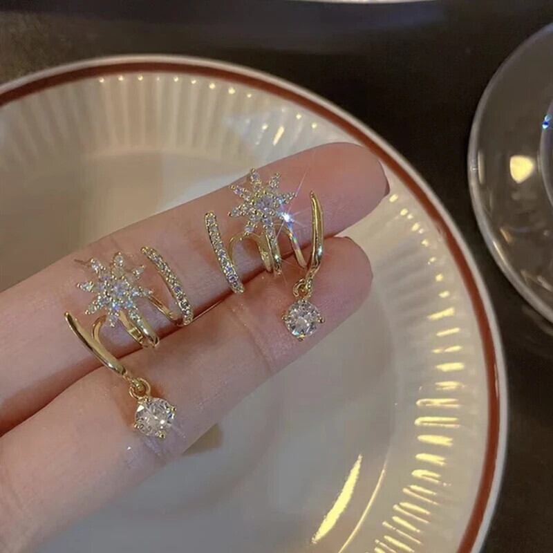 送料無料 ゴールドカラーのマイクロ象嵌ジルコンフラワー 3 爪イヤリング女性の人格甘いクールなガールズジュエリーギフト 大人ガーリー スウィート キュート カジュアル 指輪 フラワーデザイン AE12776767752597424046