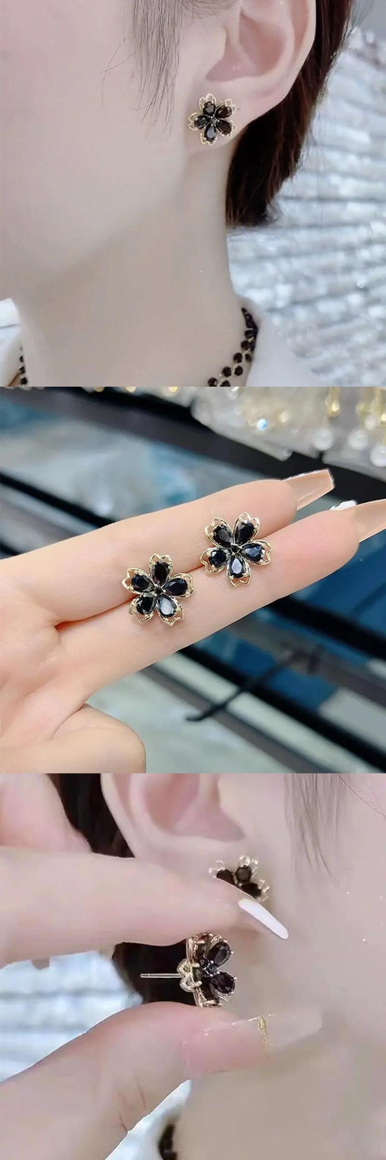 送料無料 甘い黒ジルコンフラワーゴールドカラーのスタッドピアス女性 2023 気質女の子日常着アクセサリー ブラック イヤリング 大人ガーリー スウィート キュート カジュアル リング 指輪 フラワーデザイン AE12776767752399636972