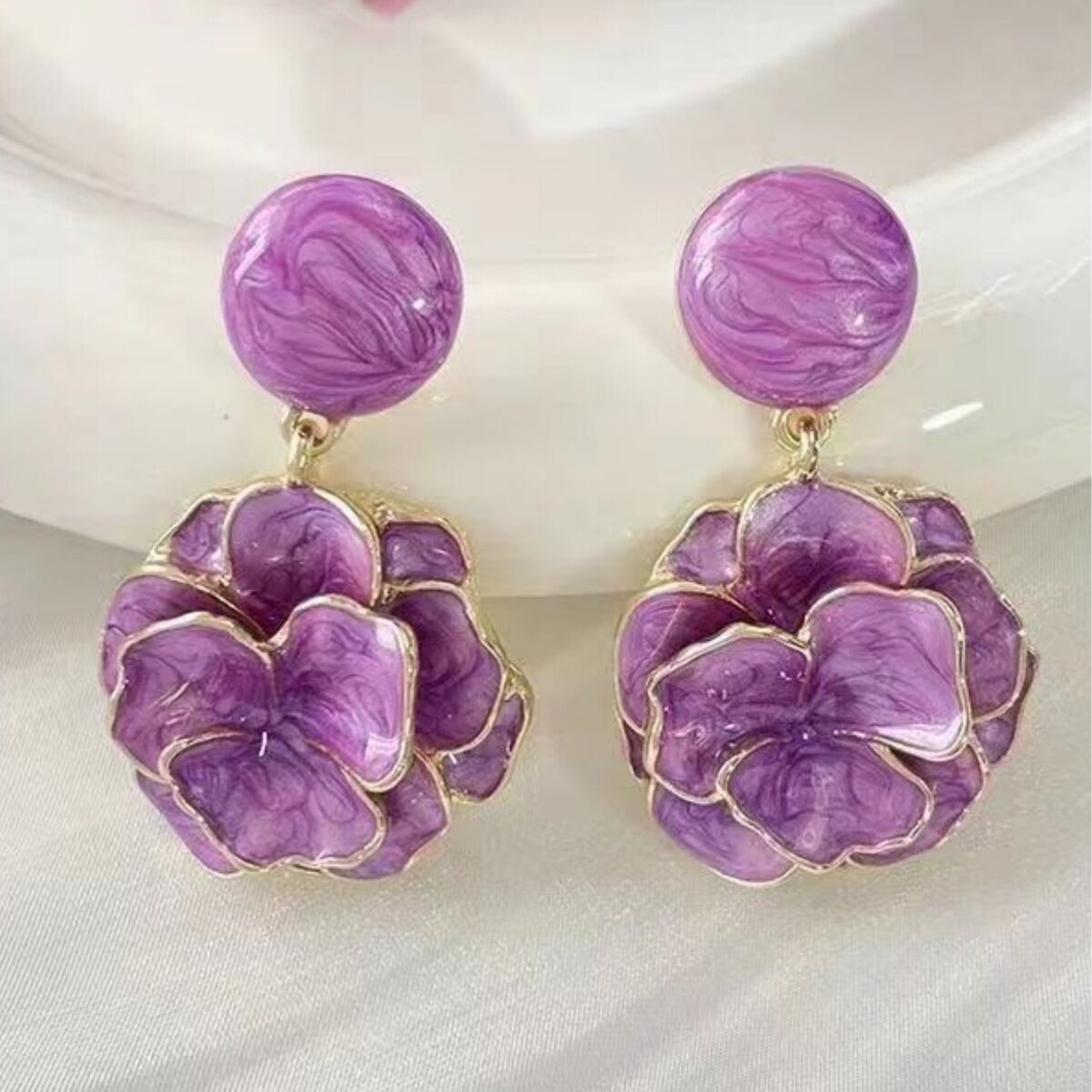 送料無料 魅力的なビッグパープルカラーフラワーイヤリング女性まばゆいばかりの花耳クリップブライダルウェディングパーティージュエリーギフト 指輪 フラワーデザイン AE12776767795400354968