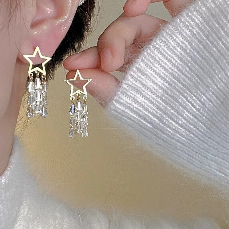 送料無料 スパークリングジルコンスターテルイヤリング絶妙な個性シンプルな幾何学的な耳のスタッドの女性のスタッドイヤリング 指輪 AE12776767737155481342