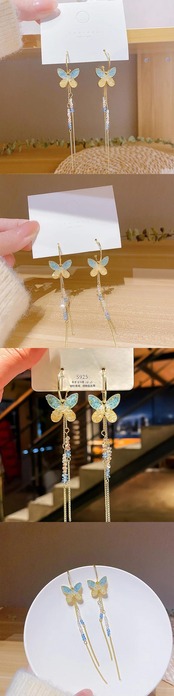 送料無料 2023 2 通りの着用方法グラデーションブルーピンクバタフライクリスタルテルイヤリング誕生日パーティーギフト高級 指輪 AE12776767765695364722