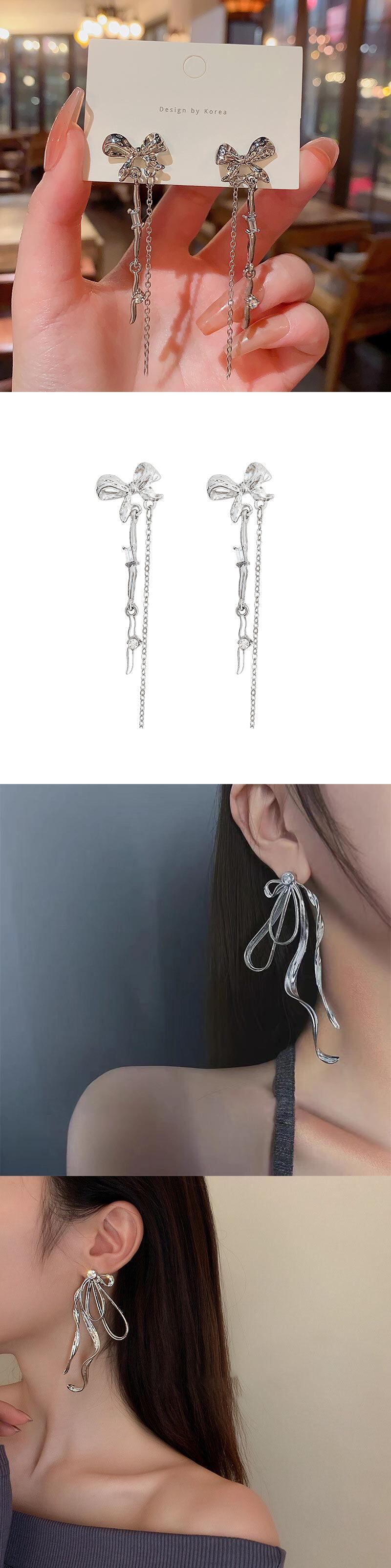 送料無料 ちょう結びジルコンスタッドピアス女性トレンディ Siliwer カラークリスタル Tel イヤリング人格ガールパーティージュエリーギフト リボン 指輪 AE12776767774551976653