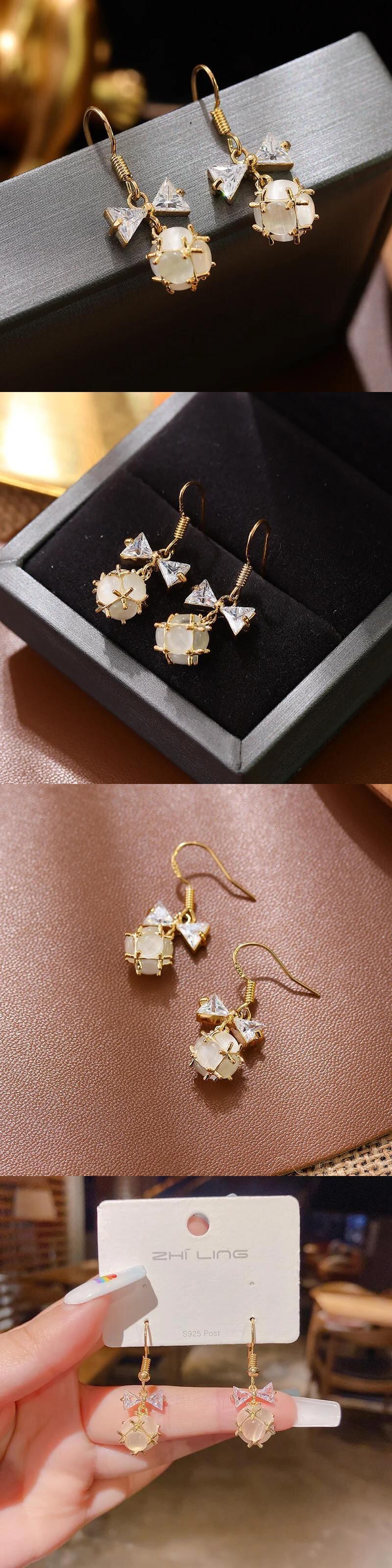 送料無料 2023 光沢のある白ジルコン蝶オパールペンダントスタッドピアス文学気質イヤーフッククリエイティブトレンドイヤリング ホワイト 蛋白石 指輪 AE12776767763408076445