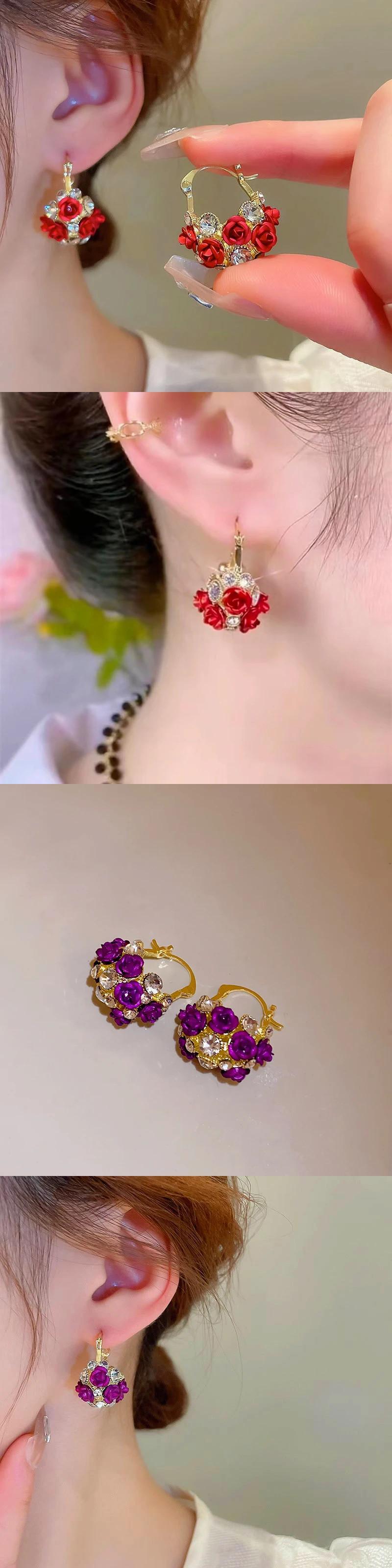 送料無料 甘いジルコンキャッツアイストーン両面フラワーゴールドカラーイヤリング女性の絶妙な女の子の誕生日ギフト 大人ガーリー スウィート キュート カジュアル 指輪 フラワーデザイン AE12776767716480974762