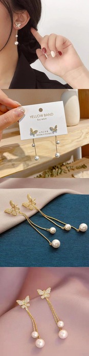 送料無料 光沢のあるクリスタルジルコン黒蝶のスタッドピアス女性ロングテルパールペンダント繊細なジュエリーギフト ブラック イヤリング 真珠 リング 指輪 AE12776767788267637224