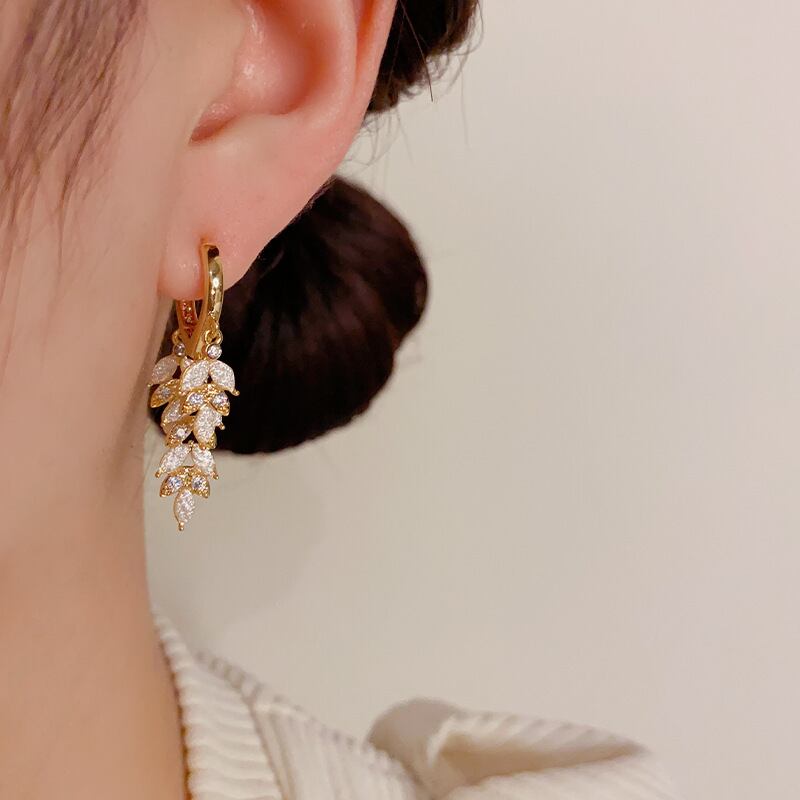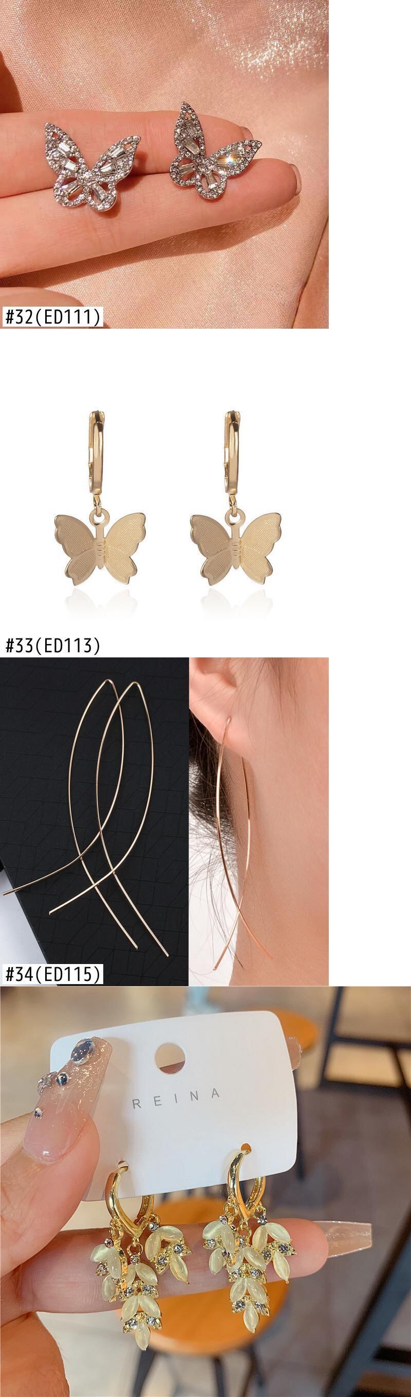送料無料 絶妙な葉クリスタルフラワースタッドピアス女性ジルコンローズ蝶電話イヤリング花嫁のウェディングパーティージュエリーギフト 指輪 フラワーデザイン AE12776767734944675380