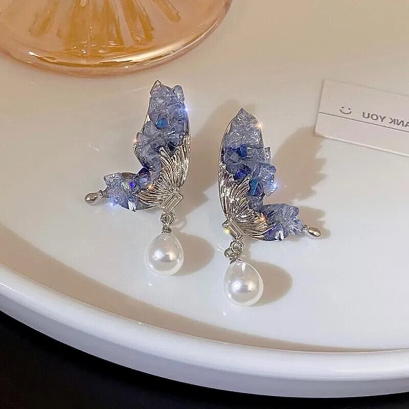 送料無料 レトロブルークリスタルバタフライウォーターパールペンダントスタッドピアス女性ユニークな甘いガールズパーティージュエリーギフト イヤリング 大人ガーリー スウィート キュート カジュアル 真珠 リング 指輪 AE12776767747094587309