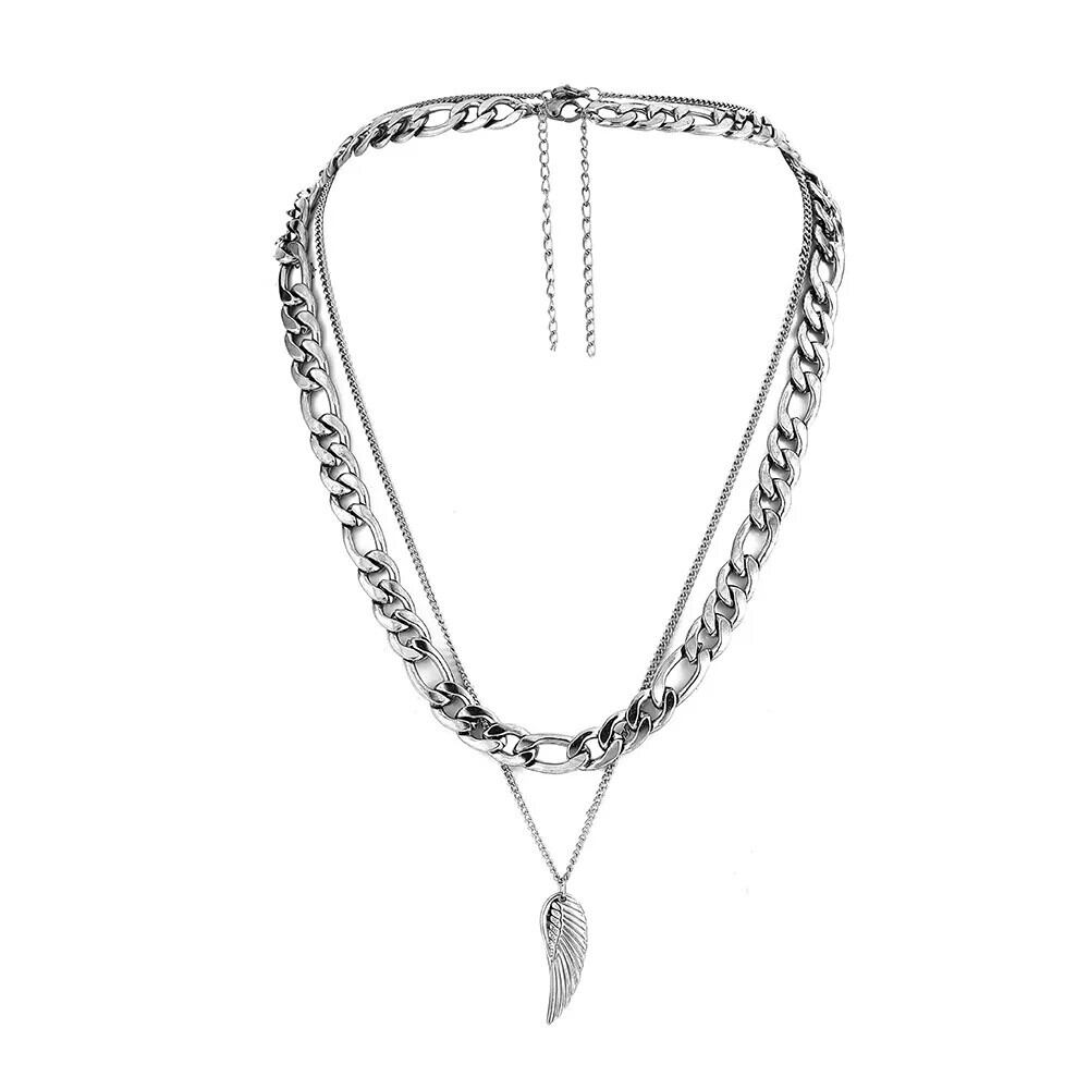 送料無料 ステンレス鋼の翼二層ネックレス男性パンクトレンディ珍味チェーンステートメントペンダントストリートジュエリー レース AE12776767752522948277