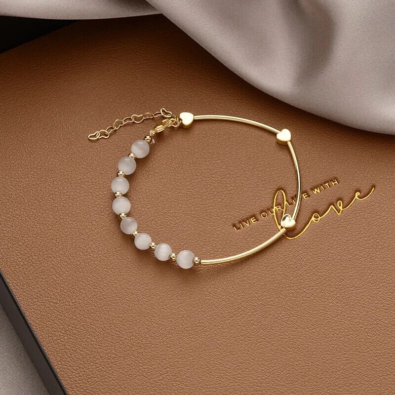 送料無料 2023 夏フレンチレトロオパールハート形合金ブレスレット高級誕生日ギフトジュエリー サマー 夏物 蛋白石 AE12776767767220155972