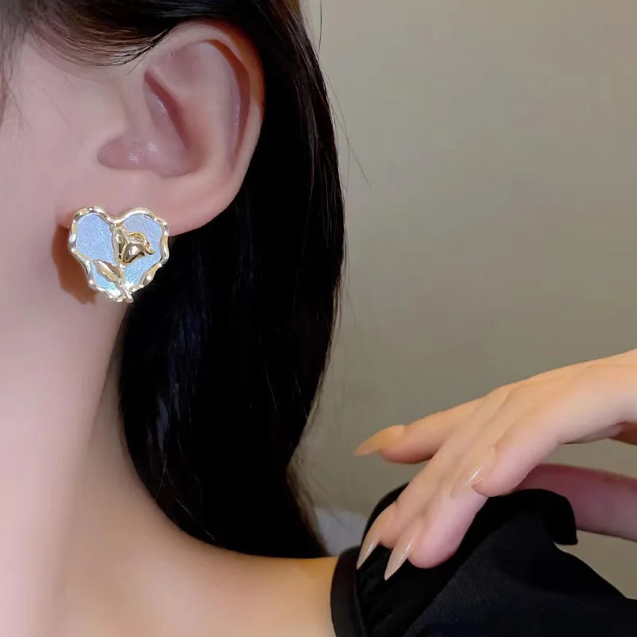 送料無料 不規則なハートチューリップパターンスタッドピアス女性人格気質イヤリングトレンドジュエリーギフト 指輪 AE12776767711372722411