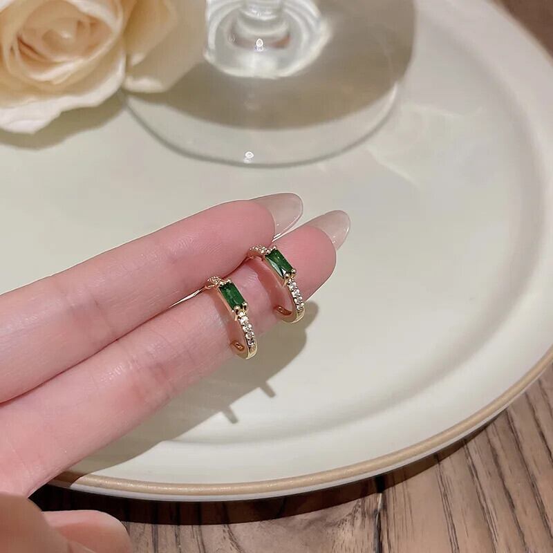 送料無料 レトロエメラルドスクエアクリスタルジルコンゴールドカラー C 字型イヤリング女性 2023 気質女の子の誕生日ジュエリーギフト 指輪 スクウェア 翠玉 緑玉 AE127767677650967711
