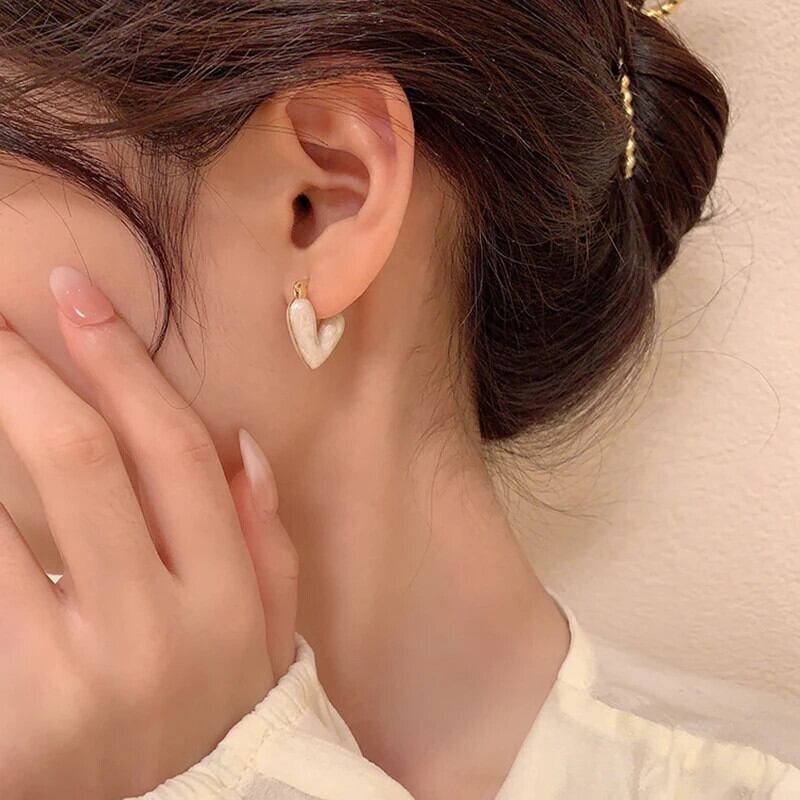 送料無料 レトロミルクホワイトラブイヤリング 2023 トレンドスウィートガール気質ジュエリー誕生日パーティーギフト 大人ガーリー キュート カジュアル 指輪 AE12776767738039752497