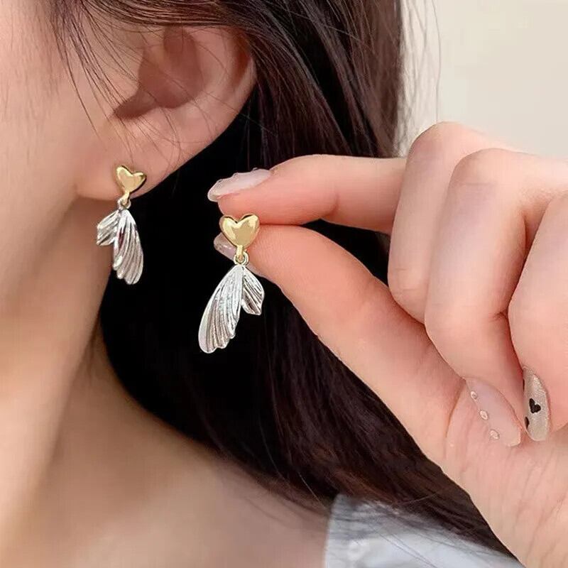 送料無料 パンクゴールドカラーのラブハートフェザーイヤリング女性/男性パーティーシルバーカラーのイヤリングジュエリー pendientes デ aro mujer 指輪 銀 AE12776767789079066873