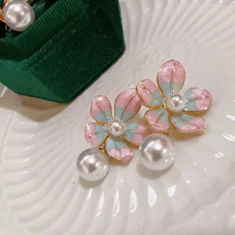 送料無料 新鮮なダブルカラーピンク椿ニードルイヤリング植物システムパール甘いフレンチヴィンテージバロックパール女性のフープイヤリング 大人ガーリー スウィート キュート カジュアル 真珠 指輪 ビンテージ AE12776767733902200681