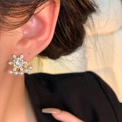 送料無料 トレンドユニークで絶妙な軽い高級ジルコンスノーフレークパールイヤリング女性ジュエリーウェディングギフト 真珠 指輪 AE12776767733446327062