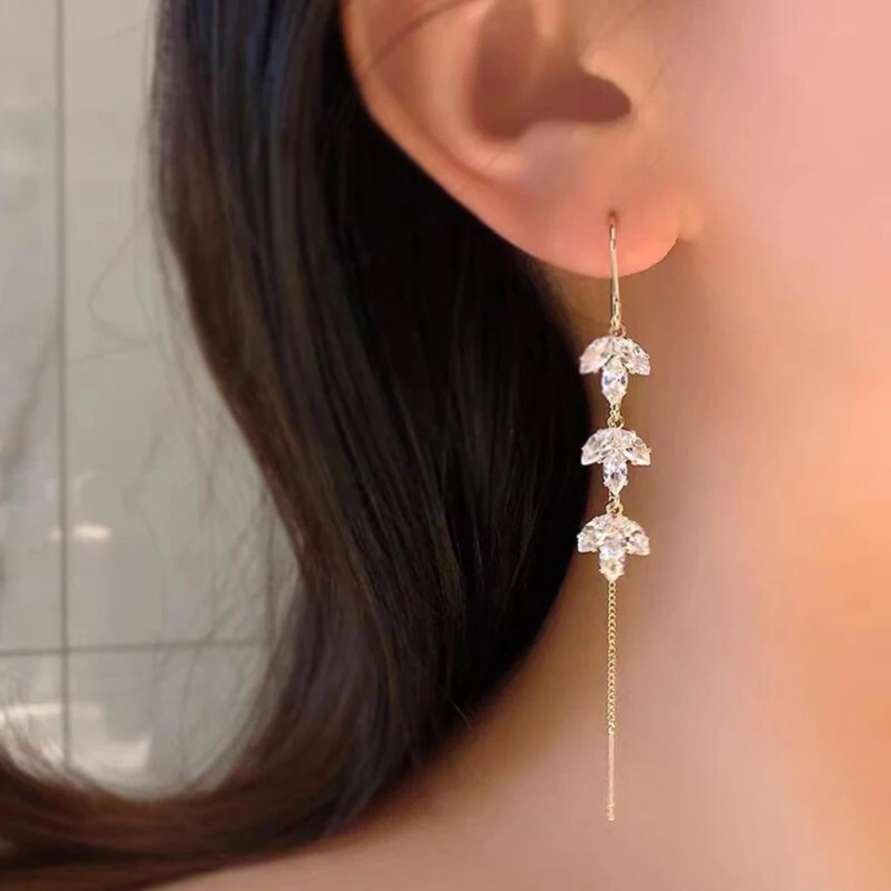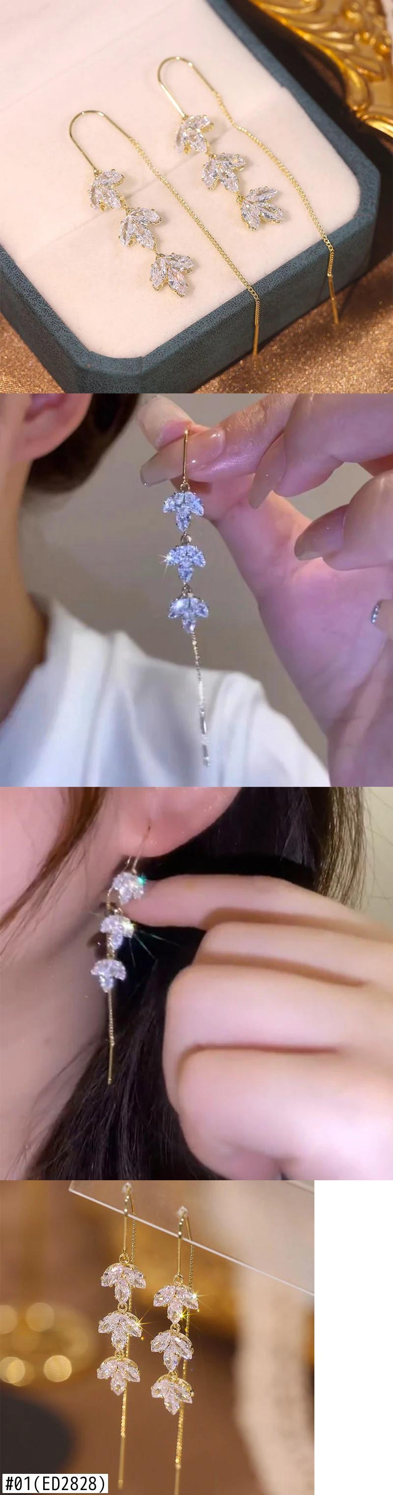 送料無料 絶妙なホワイトジルコンカエデの葉ロング電話チェーンゴールデン耳ワイヤー女性のウェディングパーティー気質ジュエリーギフト AE12776767753653193057