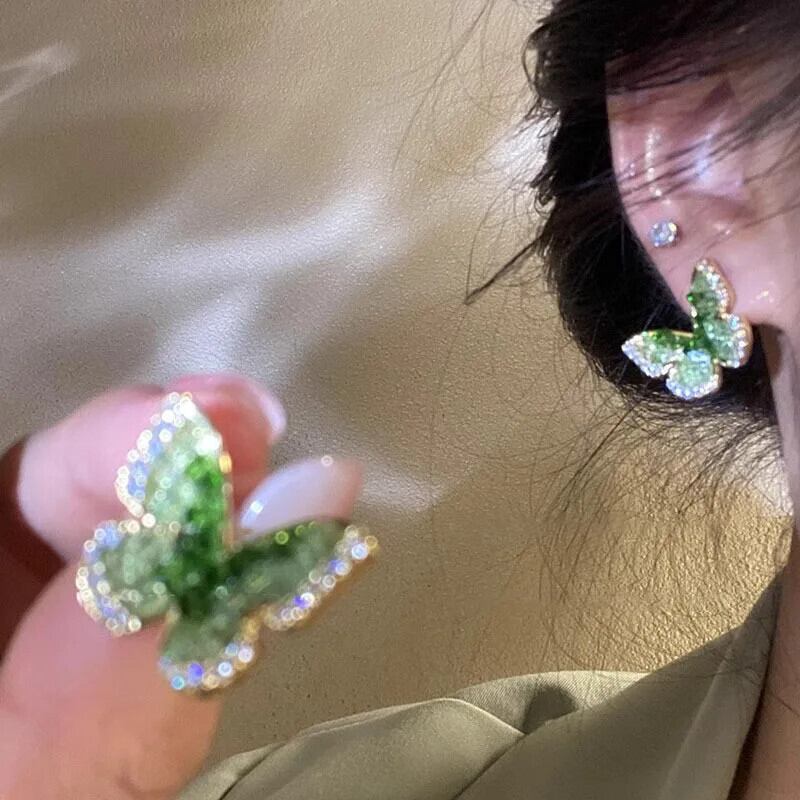 送料無料 グリーンクリスタル蝶スタッドピアス女性ジュエリー繊細なジルコニア昆虫イヤリング高級 Jeywely ギフト 指輪 風信子石 AE12776767763443218573