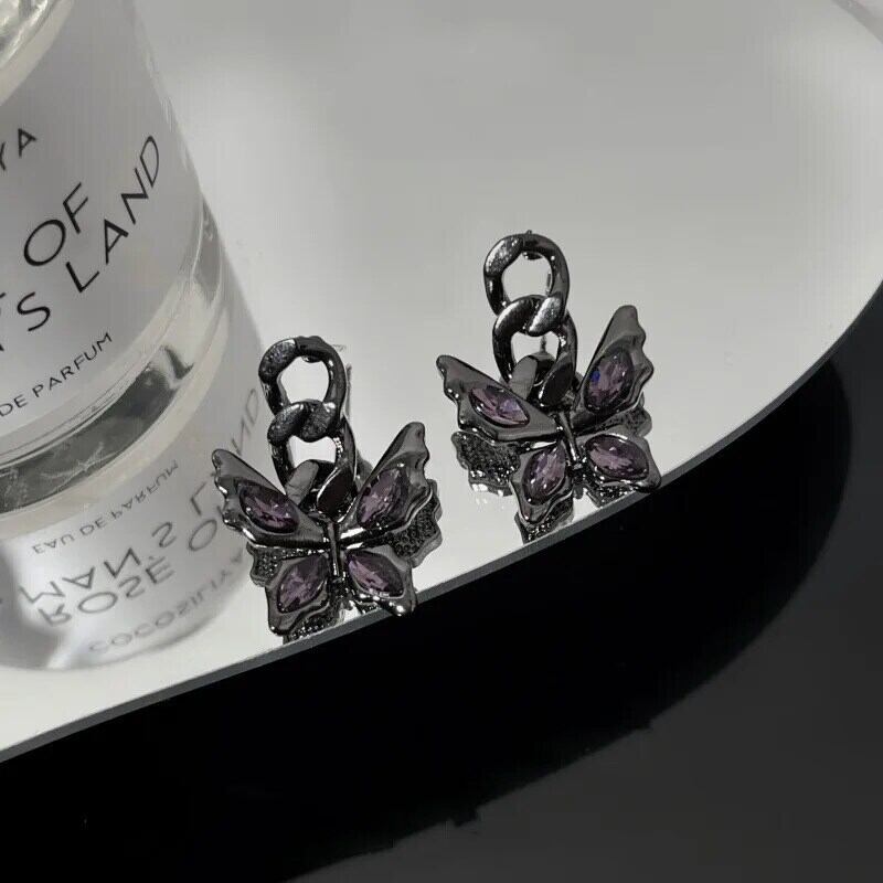 送料無料 象嵌ジルコンパープルクリスタル黒色蝶イヤリング女性の人格イヤリングウェディングジュエリー誕生日ギフト ブラック 指輪 AE12776767735020200095