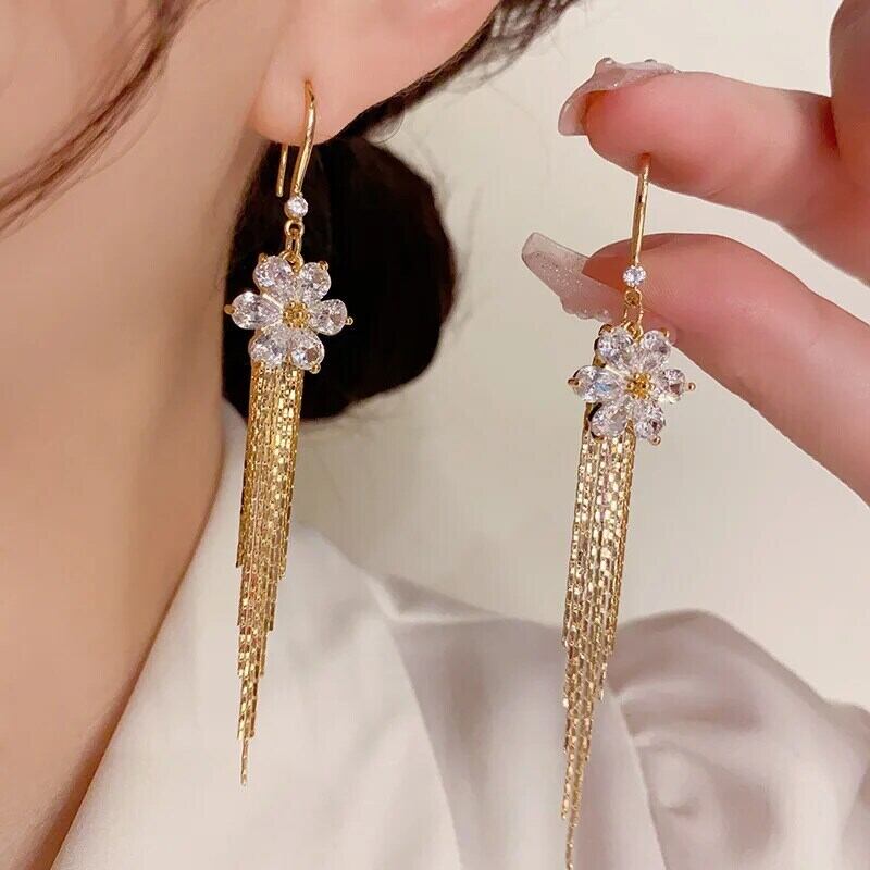 送料無料 2024 ホワイトジルコン花の形のペンダントゴールドカラーのイヤリング女性の絶妙な甘い気質ガールズジュエリー 大人ガーリー スウィート キュート カジュアル 指輪 フラワーデザイン AE12776767764291915898