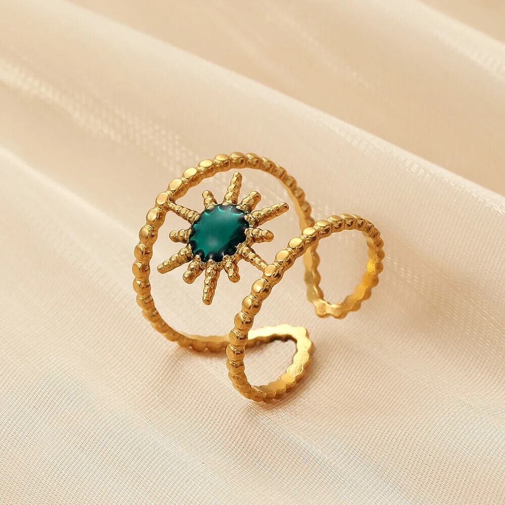 送料無料 トレンディな自由奔放に生きるゴールドシルバーカラーサンブルーオイル滴るオープニングリング女性のウェディングパーティージュエリーワイド合金指輪 銀 AE12776767727420421976