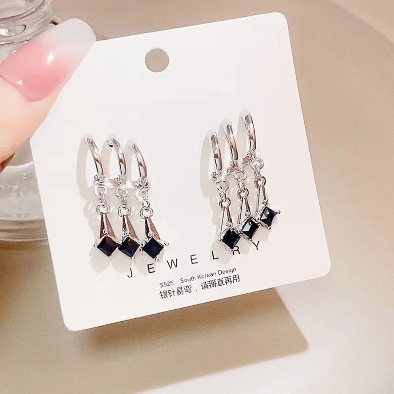送料無料 黒色光高級フラッシュダイヤモンドロングウォーターテルイヤリング女性パーソナライズ可能なパーティージュエリーギフト ブラック 指輪 AE12776767799280757148