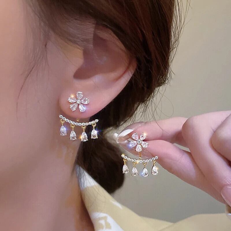 送料無料 絶妙なジルコンフラワークリスタルペンダントスタッドピアス女性 2 着用ユニークな気質ガールズジュエリー イヤリング リング 指輪 フラワーデザイン AE12776767783277965503