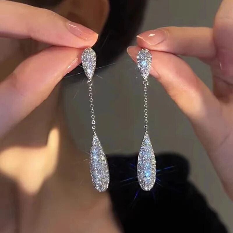 送料無料 2023 電話チェーンジルコン水スタッドピアス女性トレンド気質ウェディングジュエリーパーティーギフト イヤリング リング 指輪 AE12776767749376605381