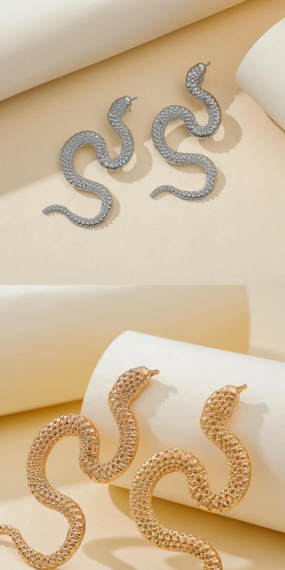 送料無料 有能な絶妙なメタル誇張されたレトロなヘビ巻きスタイルゴシック冷たい風トレンドヒップホップイヤリング誕生日ギフト 指輪 AE12776767723346819012
