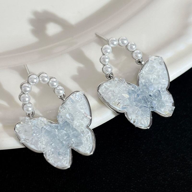 送料無料 Lnlaid ジルコンブルークリスタルパールシルバーカラーの蝶のイヤリング女性の人格イヤリングジュエリーの誕生日プレゼント 真珠 指輪 銀 AE12776767776012647802