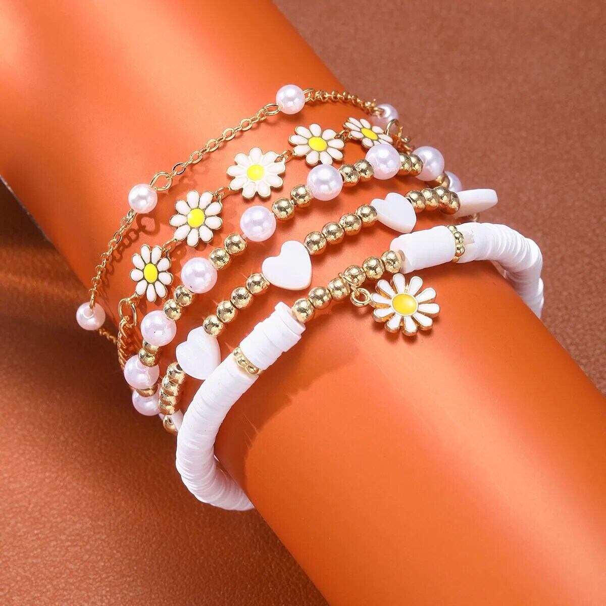 送料無料 4 個ヴィンテージユニークな繊細な小さなデイジーフラワーバタフライブレスレットセット女性ジュエリーウェディングパーティーギフト フラワーデザイン ビンテージ AE12776767718301043988