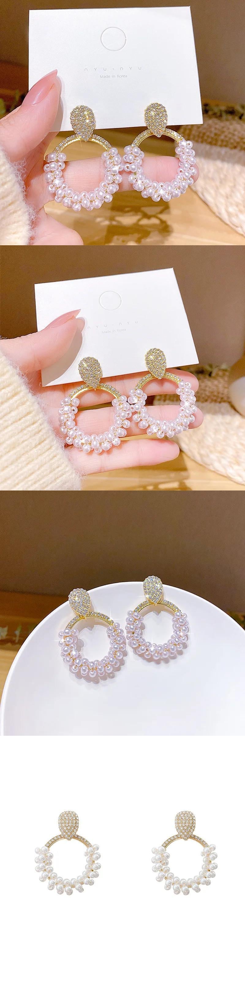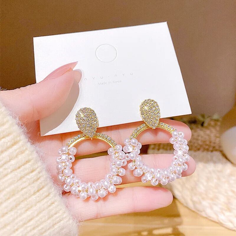 送料無料 2023 レトロ模造パールオーバルフープイヤリング女性 Clic 幾何ジュエリーギフト 真珠 指輪 AE12776767759944262079