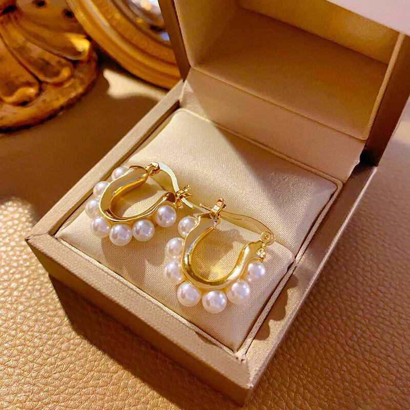 送料無料 シンプルな幾何学的なパール U 字型ゴールドカラーのイヤリング女性トレンド気質ガールズパーティージュエリーギフト 真珠 指輪 AE1277676772273765174