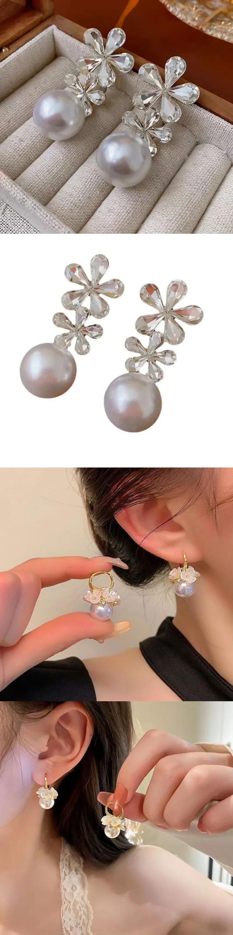 送料無料 2024 ビッグホワイトフラワーイミテーションパールジルコンクリスタルイヤリング女性の高級象嵌スパークリングウェディングジュエリーギフト 真珠 指輪 フラワーデザイン AE12776767776453836072