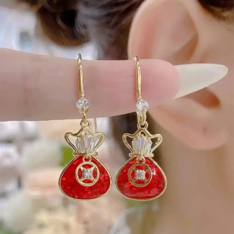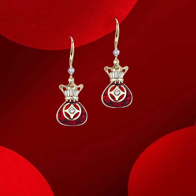 送料無料 レッドマネーバッグイヤリング中国運スタイリッシュなスタイルの花嫁のウェディングイヤリングトレンディなイヤリングジュエリーギフト 指輪 AE1277676779105727675