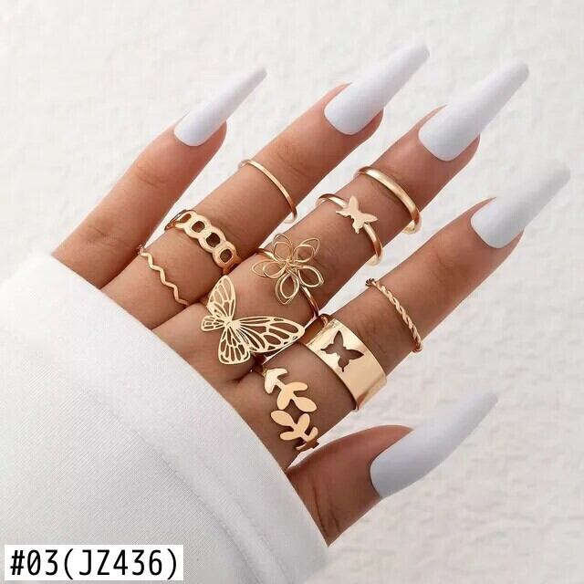 送料無料 10 ピース/セットゴールドシルバーカラー中空フラワーリングセット女性ヴィンテージ光沢のある葉つる模造パールリング WeddingParty 指輪 真珠 フラワーデザイン 銀 ビンテージ AE12776767770537394596