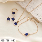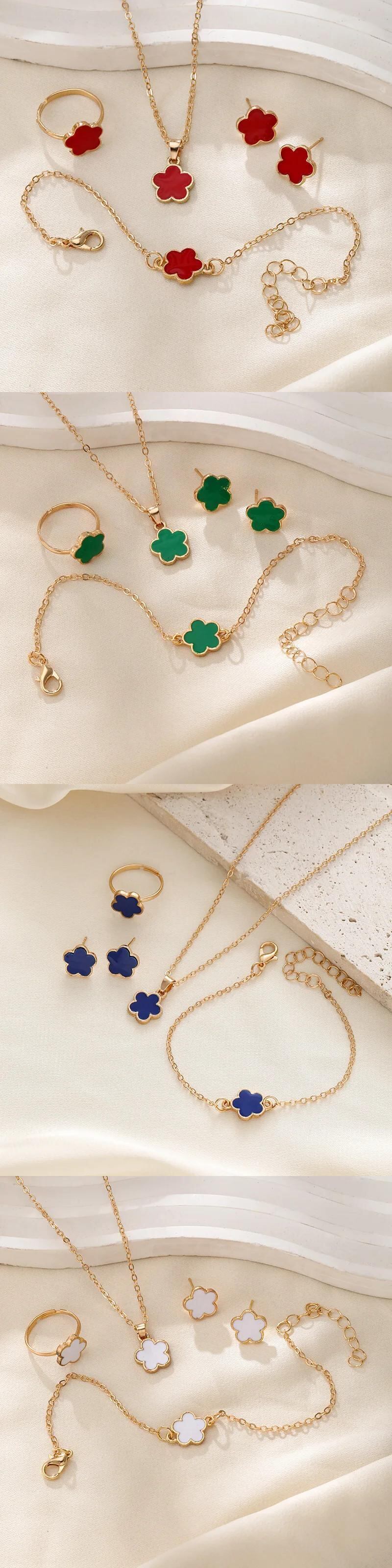 送料無料 3 個ラッキー 5 花びらの花 5 葉のクローバー リング ネックレス イヤリング ジルコン 3 点セット女性スタイリッシュなアクセサリー ギフト レース 指輪 フラワーデザイン AE12776767764778304482