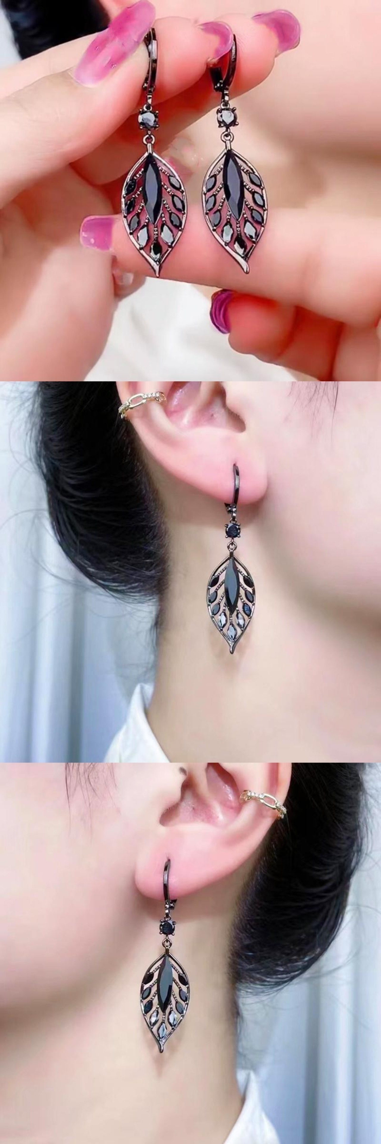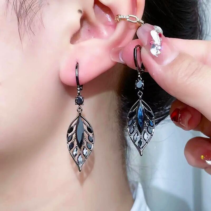 送料無料 2023 トレンドジルコンクリスタルブラックリーフペンダントイヤリング女性のユニークな気質クールガールズパーティージュエリー 指輪 AE12776767792681362590