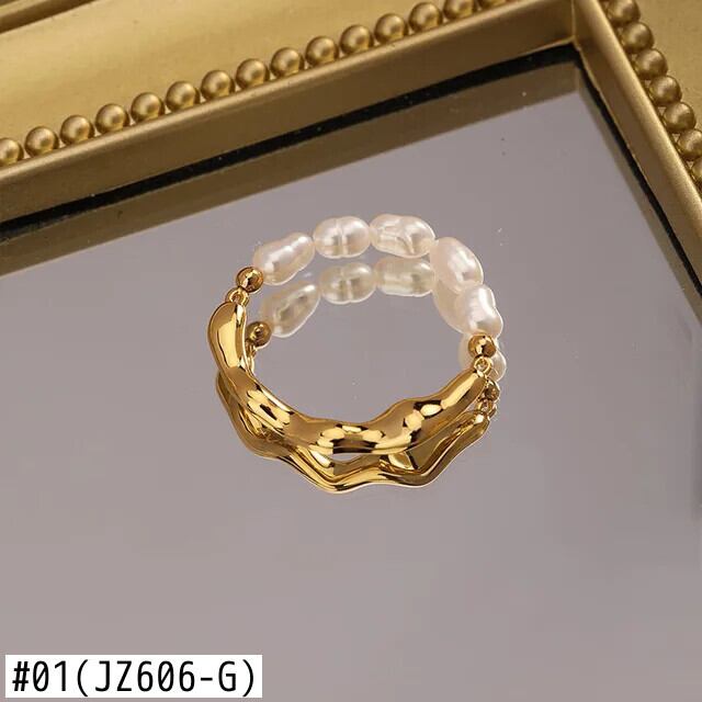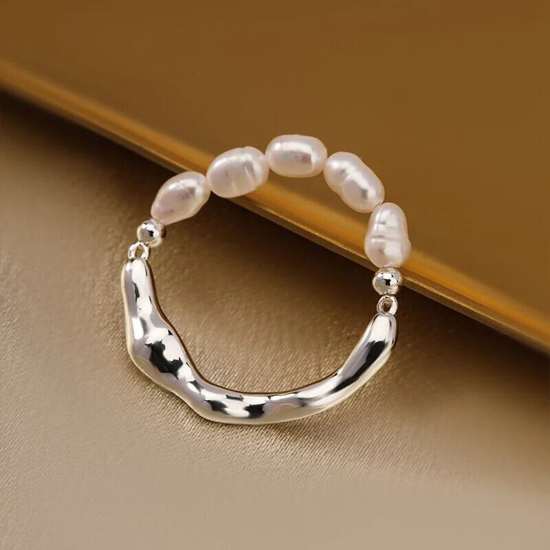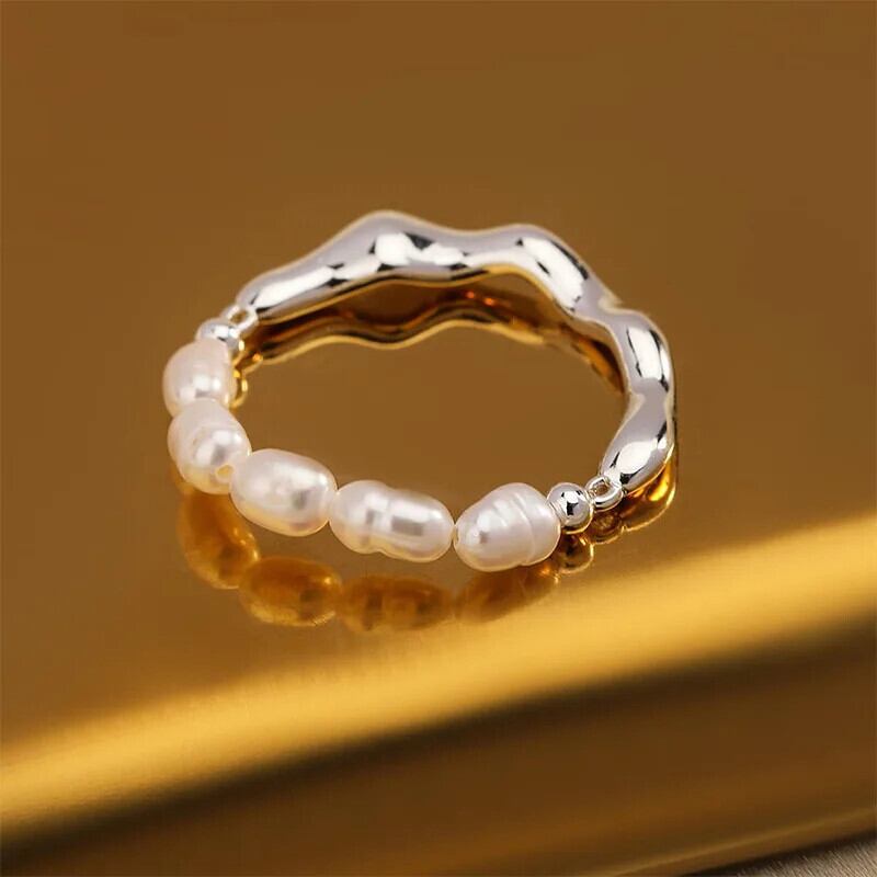 送料無料 レトロ弾性ロープパールビーズリング女性パーティー金属チェーンスプライシング指輪ジュエリー女性ギフト エラスティック 伸縮 真珠 AE12776767798484190927