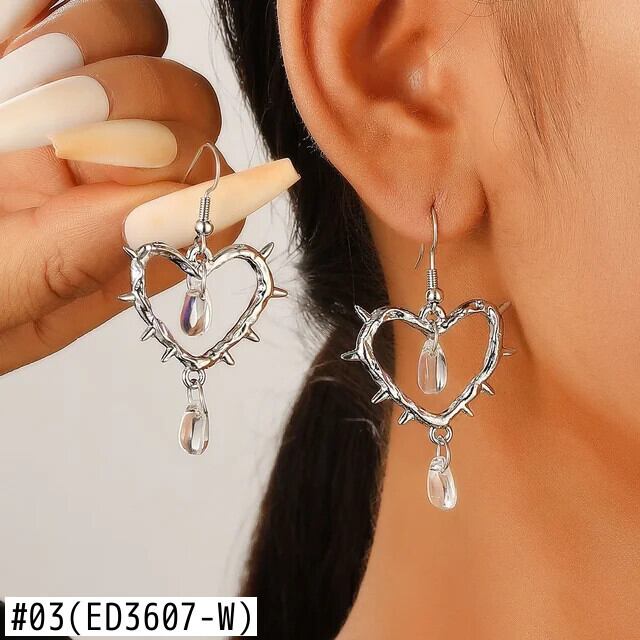 送料無料 インユニークな人格とげのある愛のハートイヤリング女性のパンクゴスクロスウォータードロップメタルイヤリングパーティージュエリー 指輪 AE12776767792603543567