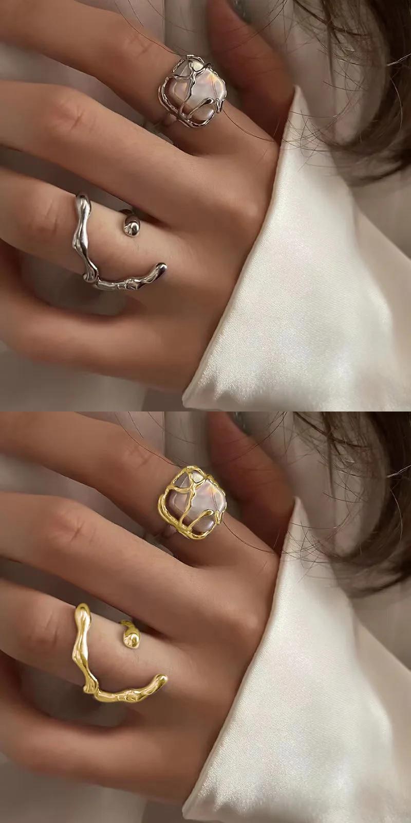 送料無料 インゴールド/シルバーカラーのミニマリスト不規則な絡み合った指輪クリエイティブ幾何学的なパンクリング女性パーティージュエリー 銀 AE1277676776142470175