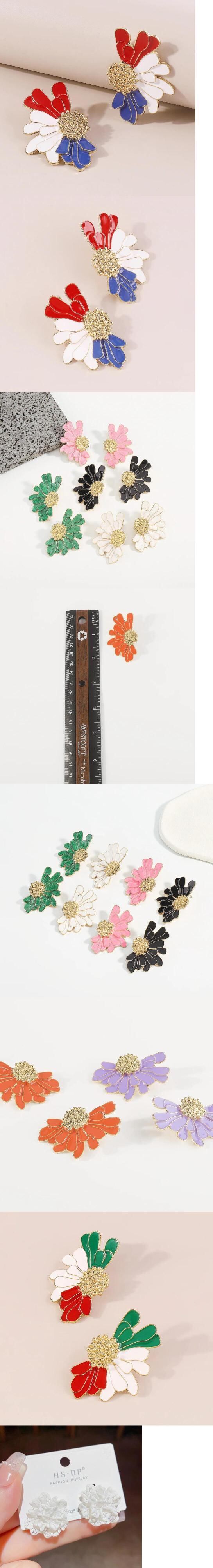 送料無料 ヴィンテージカラフルな大きな花びら滴るオイルスタッド誇張メタルイヤリング女性トレンディなパーティージュエリーアクセサリー 指輪 フラワーデザイン ビンテージ AE12776767723317869226