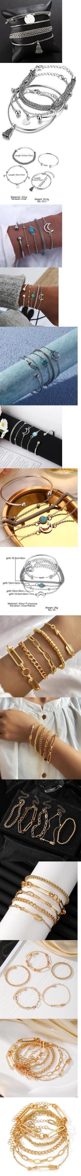 送料無料 シンプルな積み重ね可能なシルバーカラーのメタル Tel ブレスレット女性ヴィンテージ多層円形チェーン 4 ピースブレスレットセットジュエリー マルチレイヤー 銀 ビンテージ AE12776767754378032941