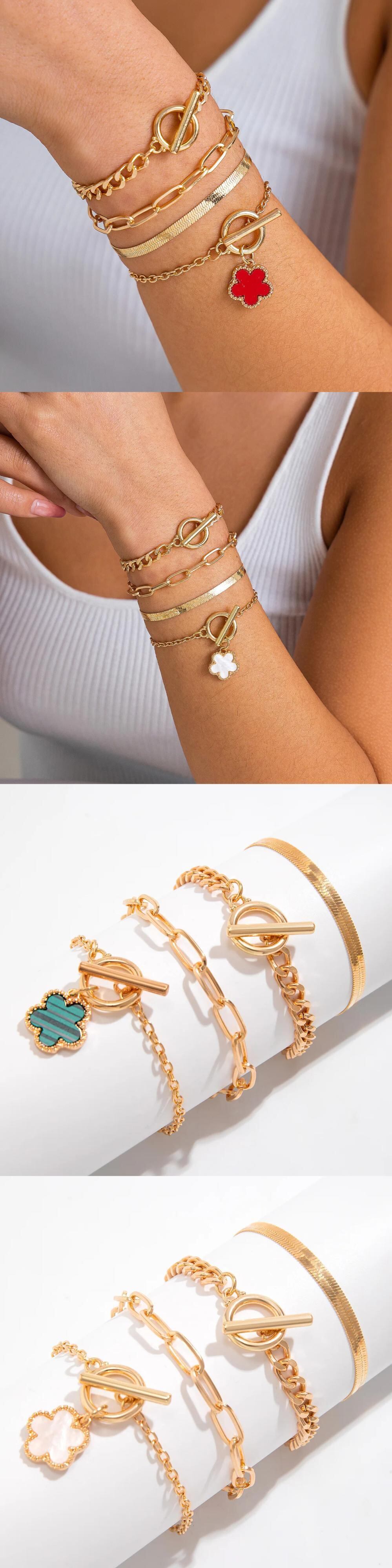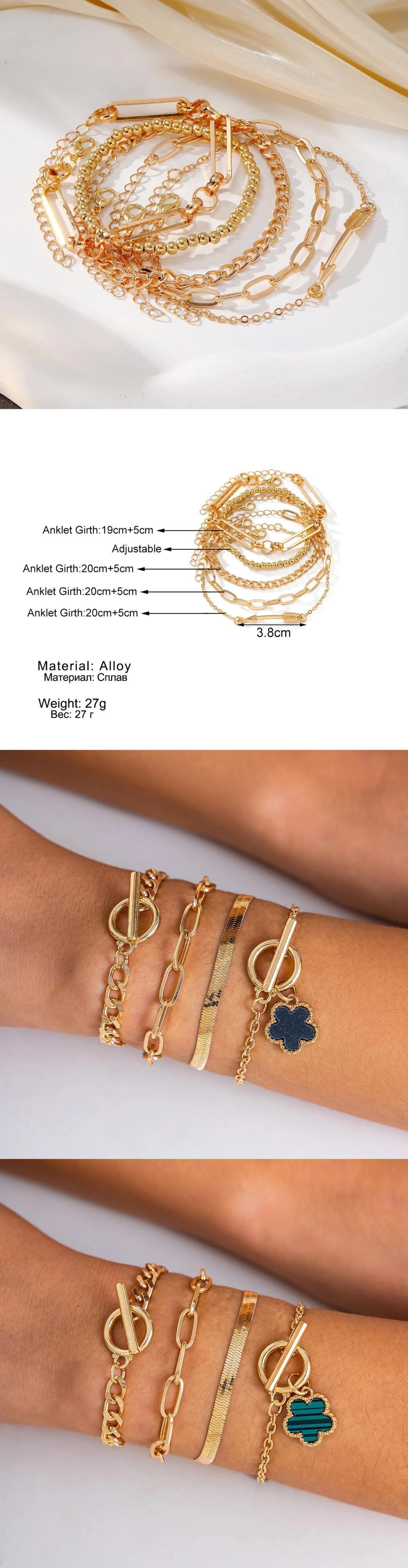 送料無料 5 ピース/セットボヘミアンゴールドカラー矢印レトロ多層メタルチェーンブレスレットセット女性 2024 トレンディなジュエリーギフト マルチレイヤー AE12776767760944369799