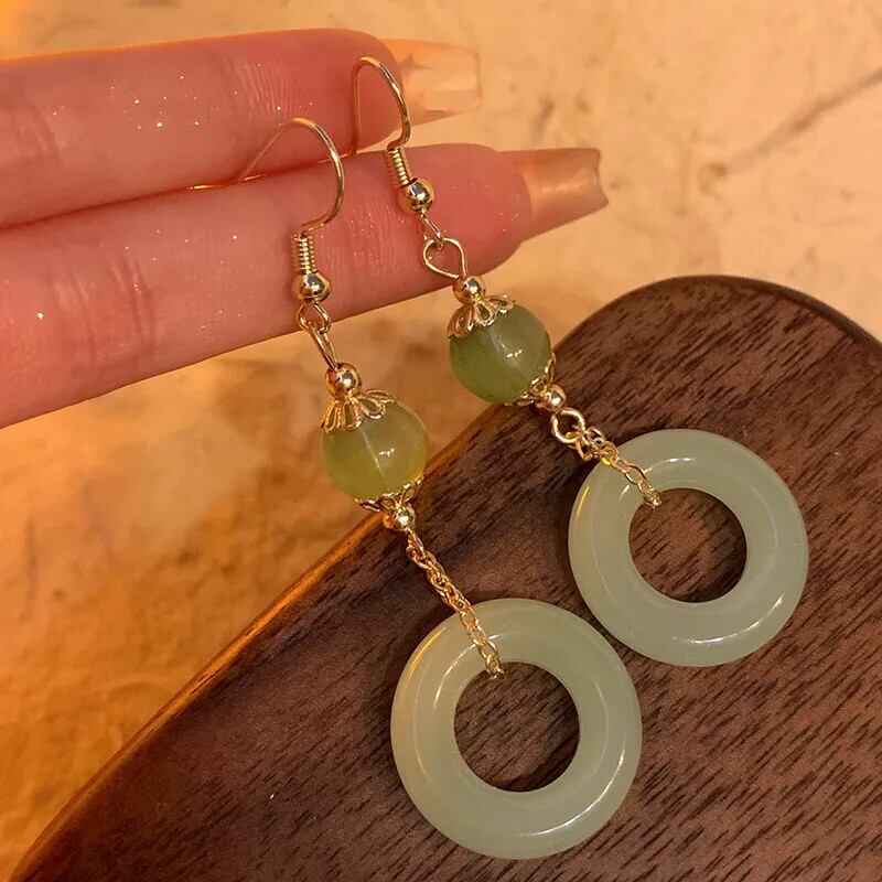送料無料 中国の翡翠のイヤリング女性ヴィンテージスタイル水オールドスタイルロングフリンジ形の高級ジュエリー漢服アクセサリー 指輪 ジェード ヒスイ ビンテージ AE12776767755019894133